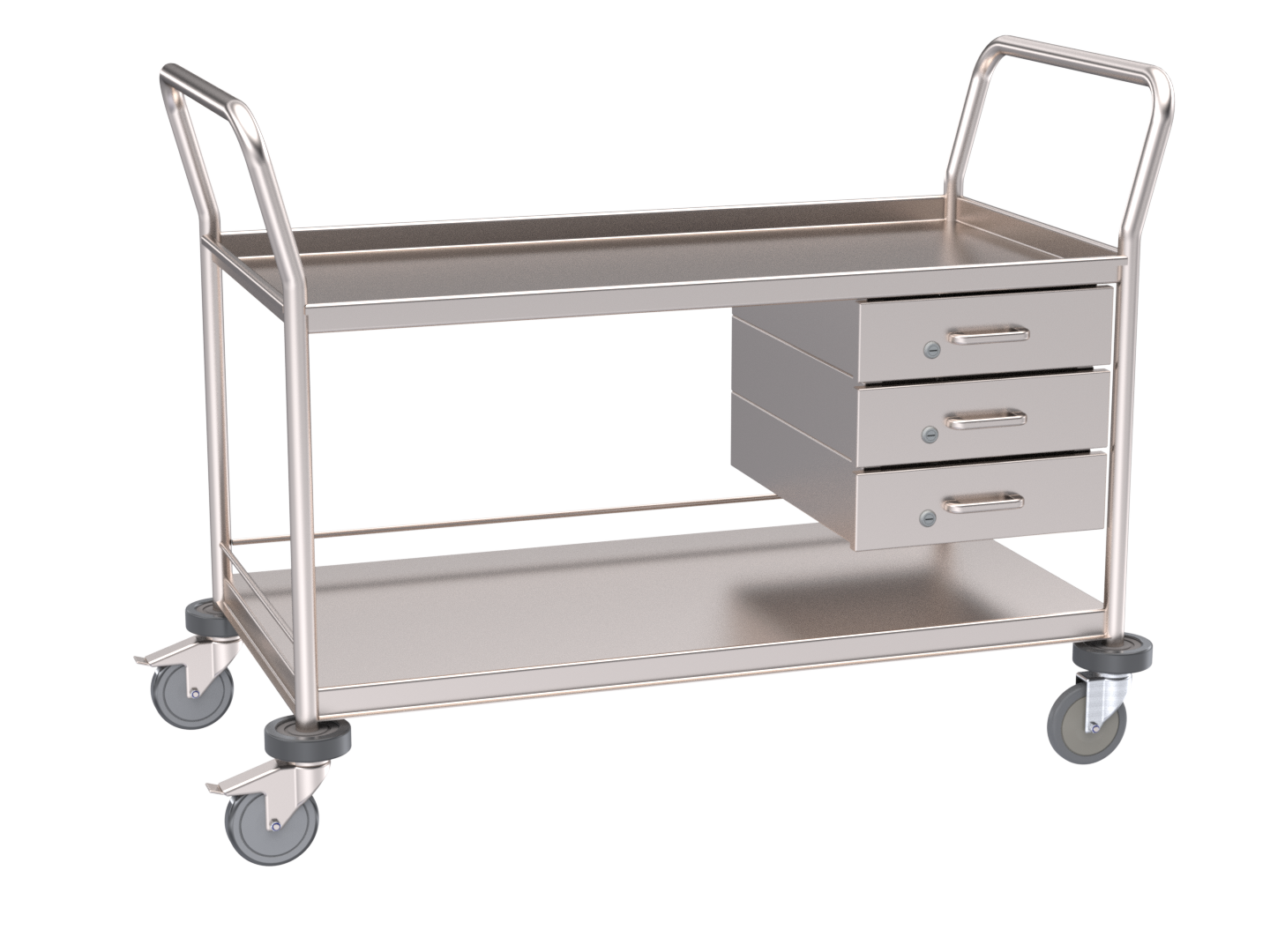 - Poly-tyred wheels Ø125mm 2 braked / 2 anti-static wheels.