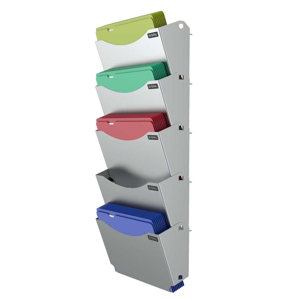 A4 wall-mounted, stackable document holder for efficiently storing important documents.