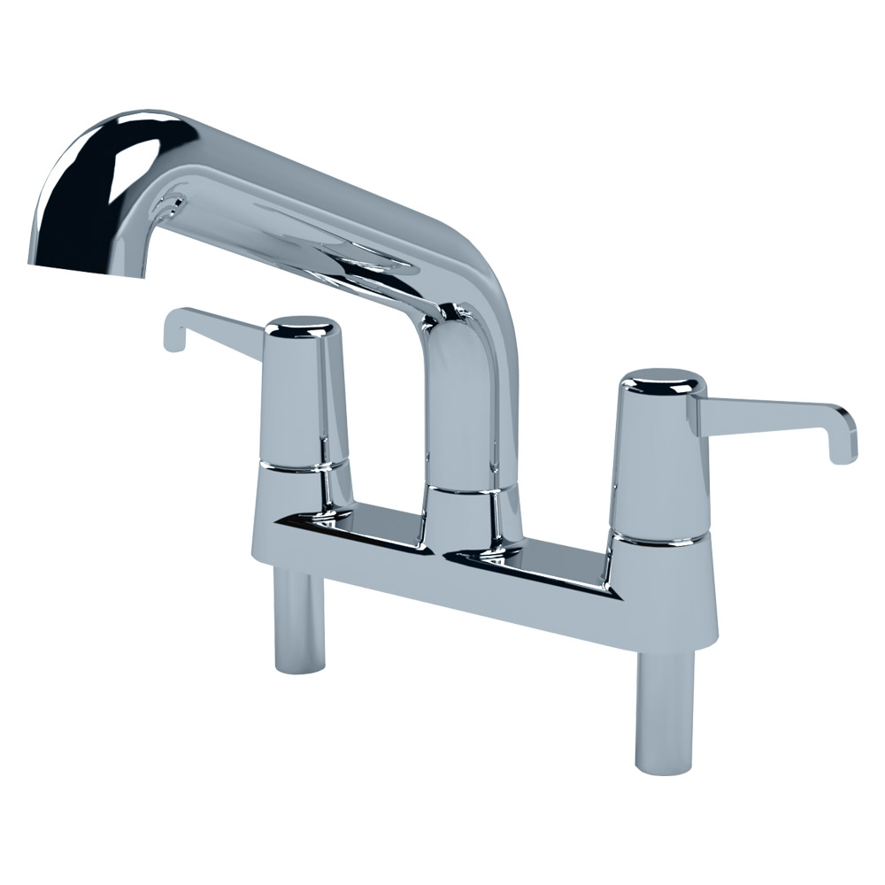 Chrome plated basin mounted taps designed to fit all standard sinks.