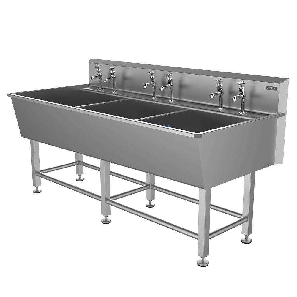 Fully stainless steel triple bowl deep belfast sink for use in hygienic environments.