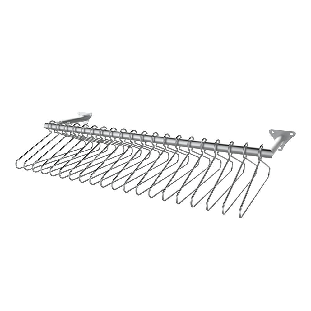- Wall mounted hanger rail with 20 fixed coat hangers