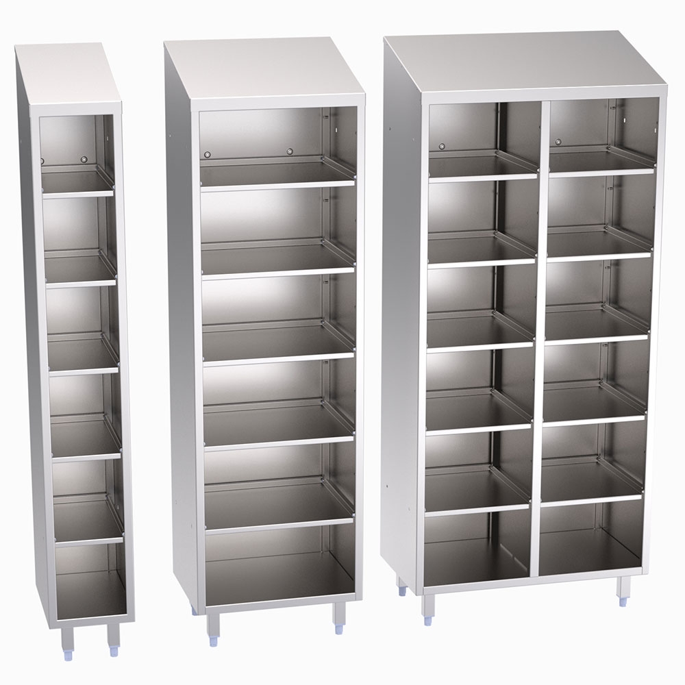 Manufactured from 304-grade stainless steel these open-faced deluxe garment lockers can be installed in washrooms or changing rooms for staff to store their clean uniform. The easy to clean design along with a sloped top to prevent the build-up of dirt and dust ensure that these lockers are suitable for use in hygienic environments such as the food industry.