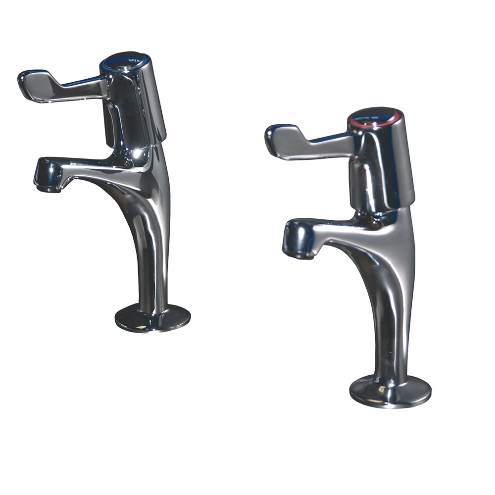 Chrome plated high neck lever taps designed to fit all standard sinks.