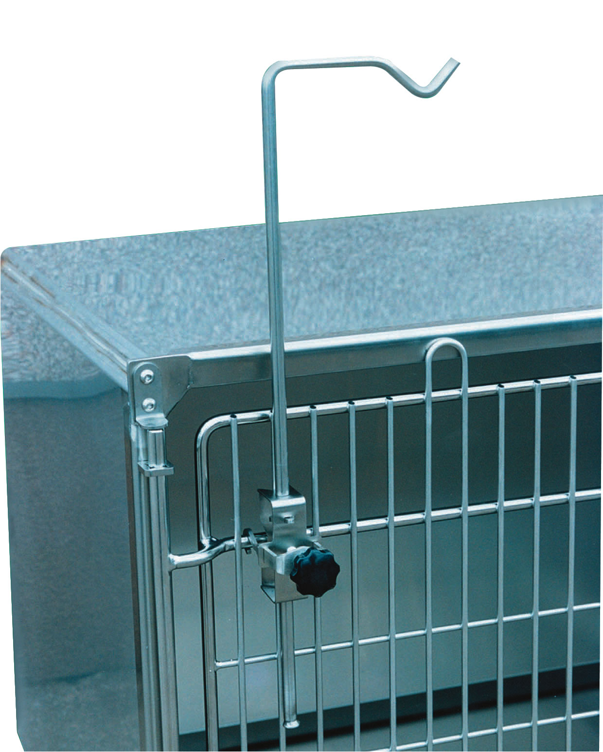 This Kennel IV Drip Holder helps to save on floor space and easily attaches to a wide range of kennels.
