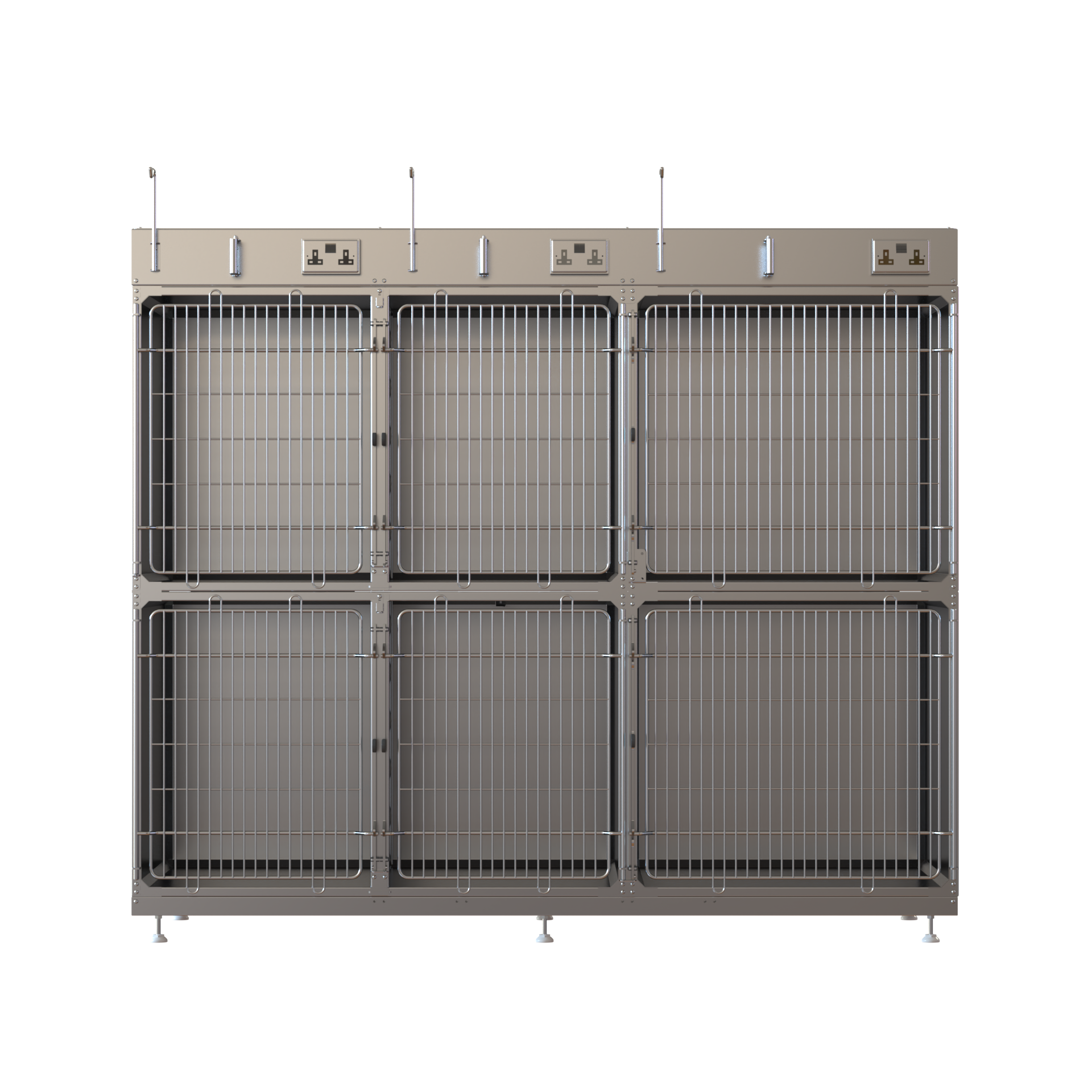 6 Unit Mixed Width Kennel Bank made from durable 304 grade stainless steel construction.