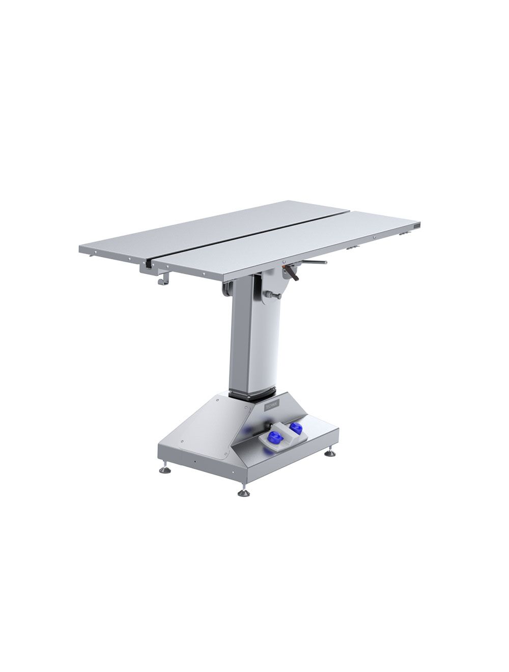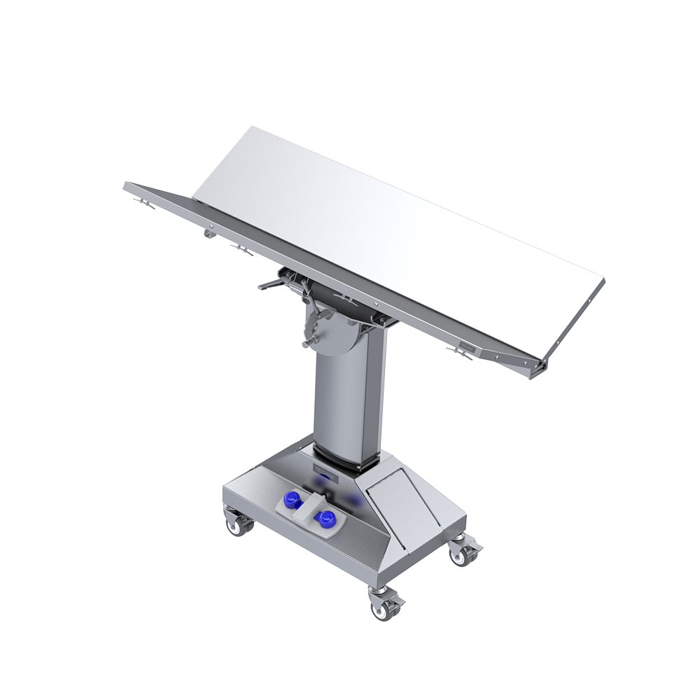 A simple, elegant V top table for a veterinary practice which removes the need for thoracic positioners.